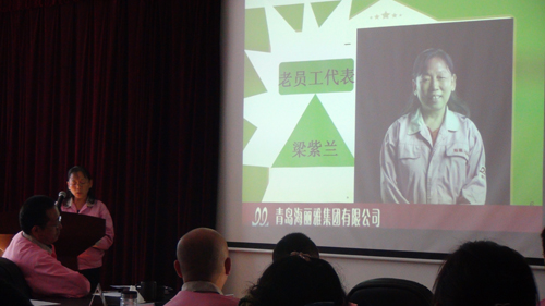 百年海麗,伴隨發(fā)展壯大,公司先后涌現(xiàn)出很多優(yōu)秀的榜樣。老員工梁紫蘭、姜德萍與大家共同分享30多年風(fēng)風(fēng)雨雨的創(chuàng)業(yè)經(jīng)歷,展現(xiàn)了老一代堅韌不拔、永不服輸?shù)木瘢腥嗽诰磁逯喔鎏韼追指袆印P聠T工郭長明、郭成志與大家分享進入公司的成長經(jīng)歷,展現(xiàn)了新一代長江后浪推前浪、敢于創(chuàng)新的魄力,更激發(fā)了大家不甘落后,勇于爭先的斗志。