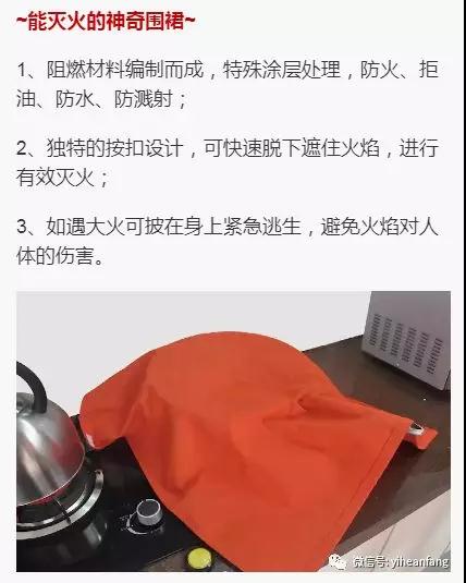 日常生活中,煎、炒、烹、炸是少不了的。在廚房忙活時,不慎引起油鍋起火也時有發生,擁有“海麗安心”多功能滅火圍裙,讓你“淡定”處理。