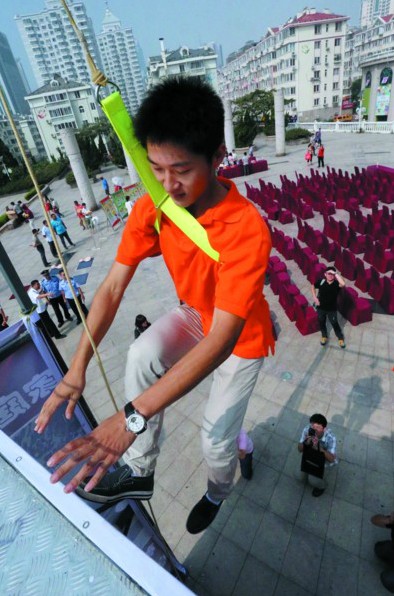 昨天上午,不少市民在專業(yè)人員指導下學習樓宇救生緩降器等先進家庭消防安全器材。