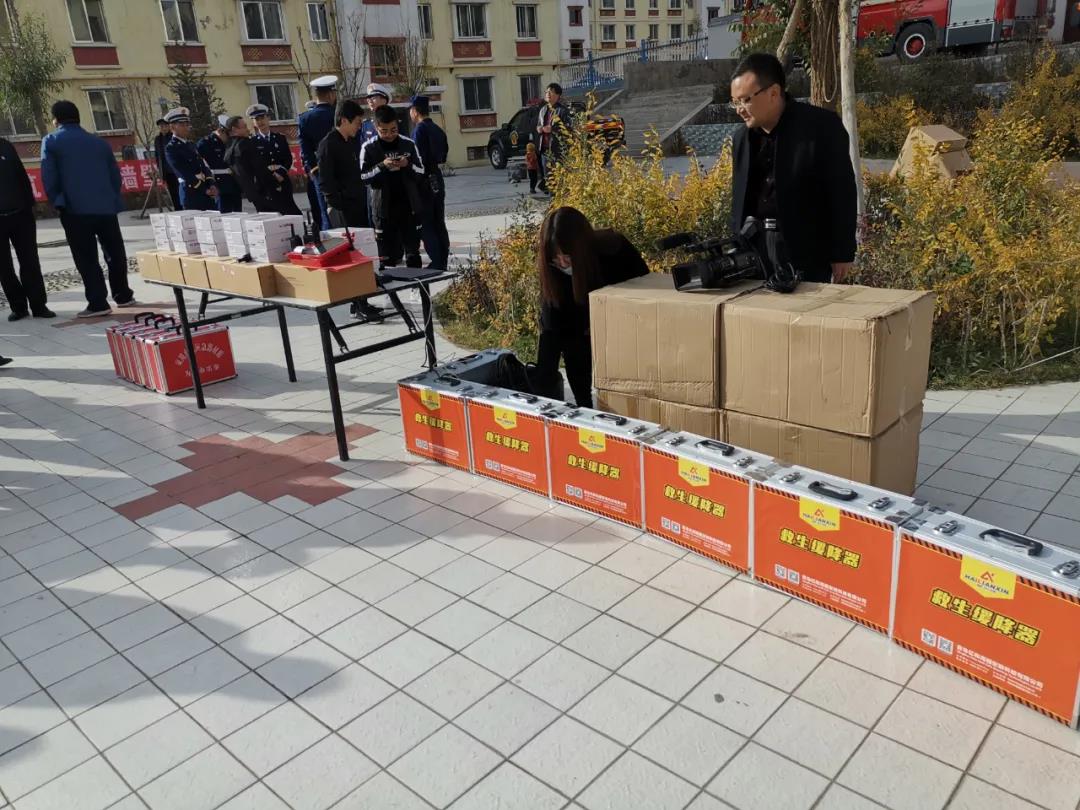 甘肅省武威市天?h消防大隊(duì)舉行“為您辦實(shí)事高層建筑消防安全器材發(fā)放儀式”,向社區(qū)居民發(fā)放“海麗安心”逃生緩降器。