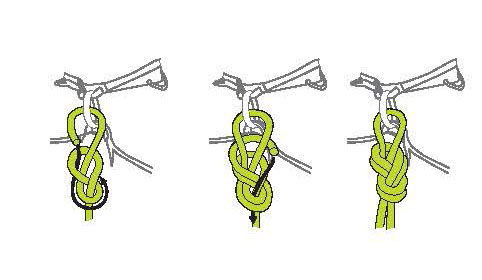 請注意:必須用一個額外的結(上手結)或車鉤固定。