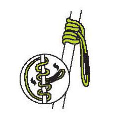 夾在下面較粗的繩子上的結加載。用于下降或救援使用。如果普魯士結不成立,增加環的數量。