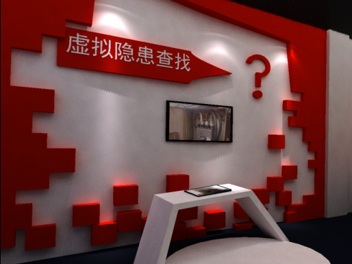 查找火災隱患裝置展示形式通過觸摸屏中多媒體模擬多個家庭場景,如客廳、臥室、廚房等,參觀者通過點擊觸摸屏中的這些火災隱患,在最短的時間內把它們找出,最后統計參觀者的得分。