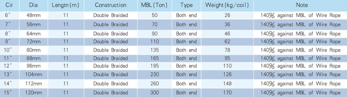 若需要其他尺寸.可以根據客戶要求定制系泊纜繩尾。