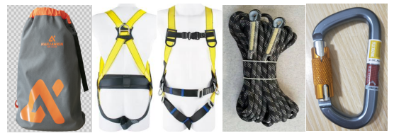 3、防護裝備組成明細:1個收納包+1條全身式安全帶+1條10.5mm*10米靜力繩+2個航空鋁鎖扣。
