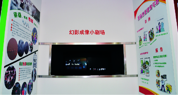通過幻影成像的方式。將影像與模型進行完美融合,展示學校發生火災和地震時,應如何進行有效的疏散。