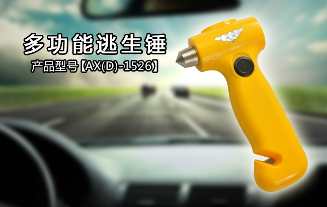 2、急救:a.敲擊:手握產品,將安全錘對準所需敲碎的物體用力敲擊。b.割保險帶:一手握住產品,一手握住保險帶,將割刀對準保險帶切割。